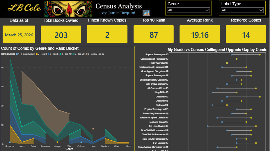 Every time I pick up my phone I see another glorious thing that people are creating or doing with “CC” and I really want in on the action. So far I have been able to take a Kaggle workbook (2 actually) that I was using to scrape the CGC website, compare to my personal collection of graded comics, and then refresh my Power BI dashboard. It actually pretty cool.